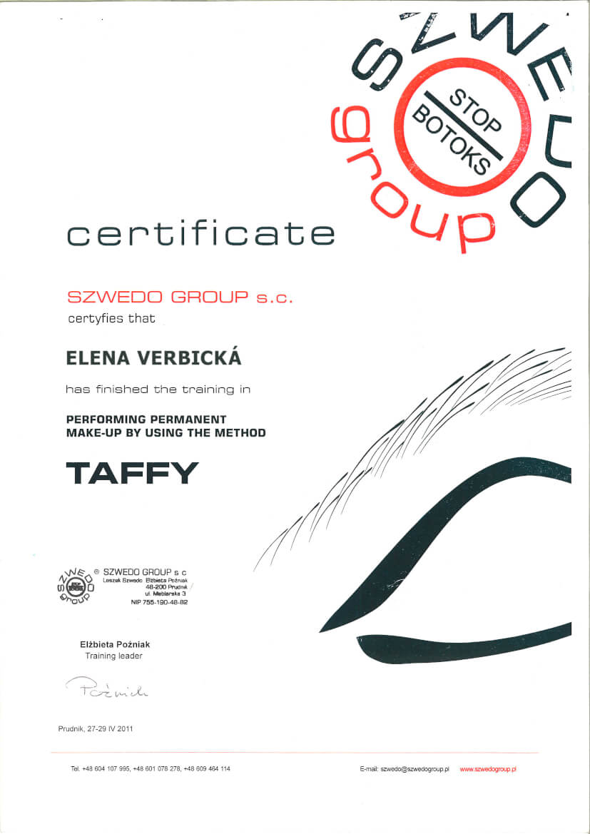 Имею международный сертификат "Мастер - метод Taffy", 12 лет опыта в перманентном макияже и более 20 лет опыта в косметических процедурах и искусстве макияжа.